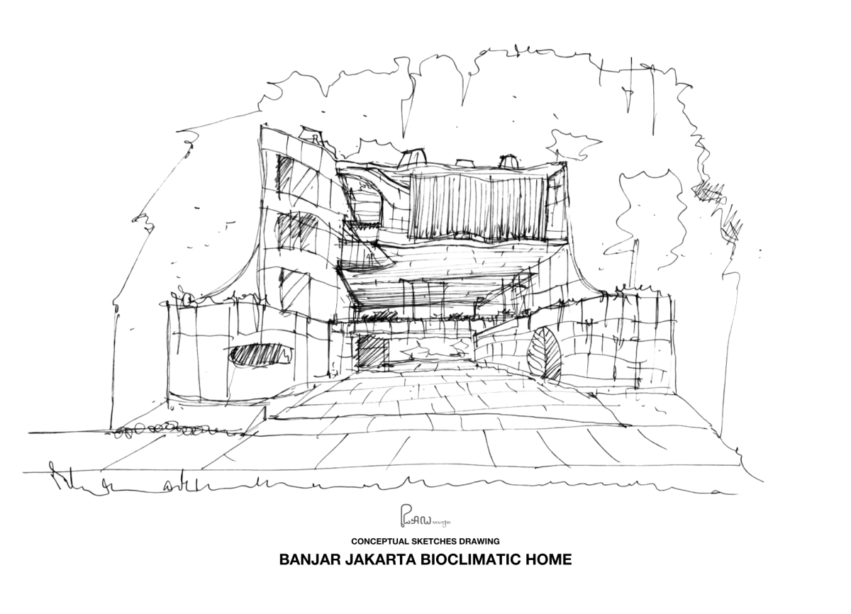 Jadi rumah ini seperti the sanctuary of their big family. Dirumah ini kami seperti membuat komposisi tebing dan gunung di atasnya. Diatasnya ada banyak permainan bentuk lengkung-lengkung supaya bidangnya lebih bermain seperti wonders all of the things.