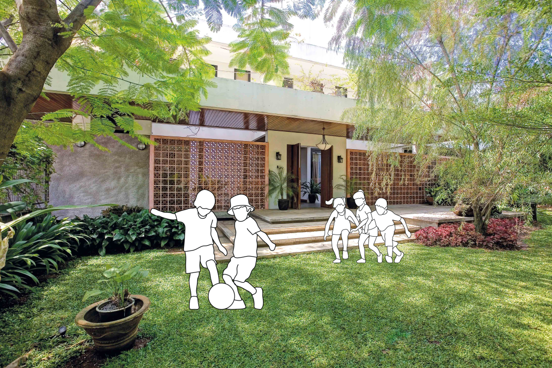 The interaction between building and tropical climate is very visible inside and outside the house. The inside of the building shouldn’t always introverted from the outside. A lot of organic elements are created inside the building, shaping voids, and make the inside building as if it’s on the outside house. Besides for sun light and air system, these voids also for social function that can build an intimate relationship between family members.