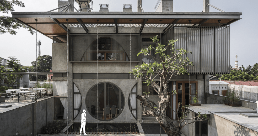 Guha is a combination of new and renovation projects based on previously “The Guild” located in Taman Villa Meruya. The Project consists of Omah Library, Dental Clinic, residence, and Realrich Sjarief’s studio named Guha Bambu, The studio is Realrich Architecture Workshop (well known by name of RAW Architecture). The renovation section is consisted of adding sequences for adding elaborated programs for Omah Library such as more storage for bookshelves, bookstore, and gallery. The circulation is designed to separate the public and private which is solved by separating the access at the entrance. The new project, named Guha Bambu is on the east side. This building stands in the lot of 7.5 x 26 m size consisted of new 3 levels Bamboo structure, 2 levels of the basement. The technique to build the structure is elaborated from the experimental school of the Alfa Omega project. The technique separates the steel plane truss structure as a roof and bamboo structure to hold the 3-floor plate under the steel structure roof.