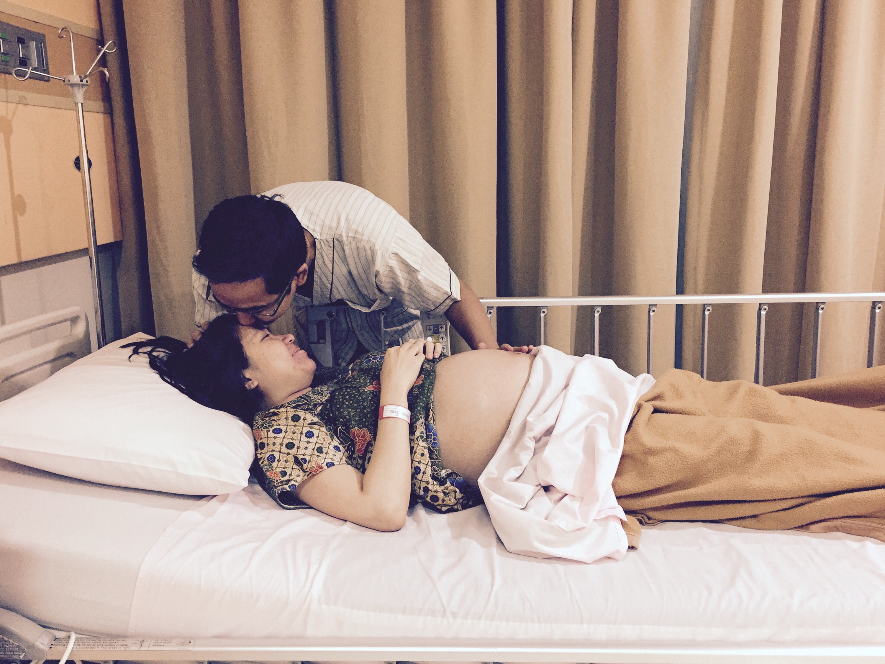 She was smiling, laughing. Tommorow is our big day. I knew she was scared of the cesarian, hoping everybody would be all right, thinking the bad thing, what might happen. She is sleeping right now, I feel more relaxed but I still could not sleep until now, 2.30 am.