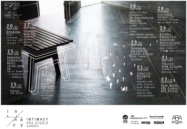 I think ARA’s Exhibition: Intimacy, in the appraisal of good exhibition’s framework has 4 agendas: first, intimacy tried to minimize the gab of architect and the public, showing with it’s title and the models which can be played by public and workshop by kids, second, it exhibited the layer of the architect’s studio showing by the relics, the things around designers such as, miniatures, or even guitar played by the staffs or else. Third, it tried to exhibit the layers of communications between stakeholders such as principals and other party by notes showing communications inside whataspp group printed and hung on the wall. Fourth, it shows an introduction for ARA’s work through models, text and some diagrams. These 4 layers are combined with an attitude to open their studio for public especially for architects, young designers, students for sharing ideas, discussions, or just for chatting.