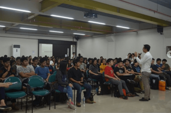 Realrich Sjarief giving lecture to Tarumanegara student about the importance of reading book in architectural carrier.