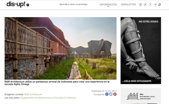 In this article, Dis-up! featured Alfa Omega School’s design and construction. The article consist several arieal photos of the school to give more insight about its process.