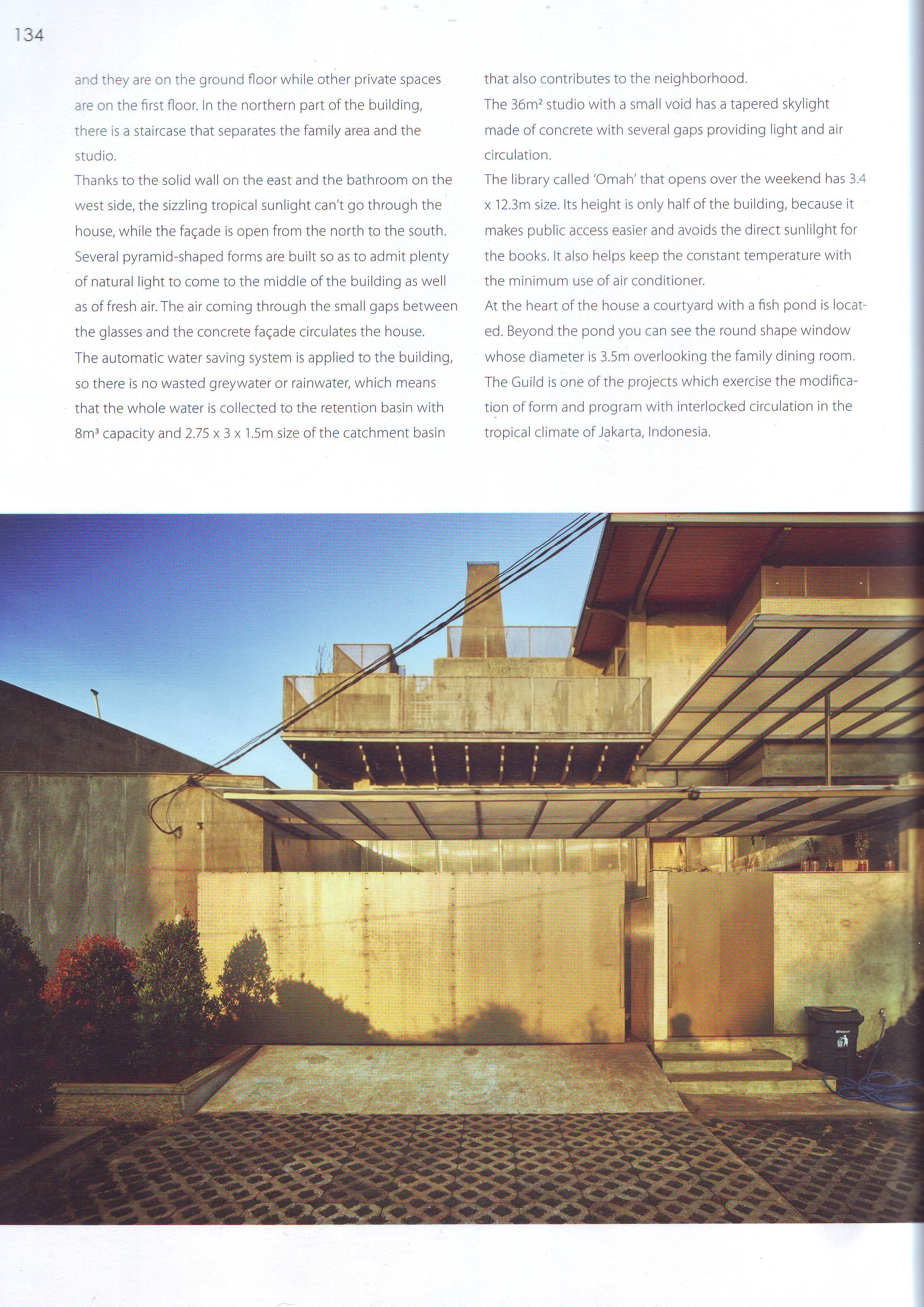 Proses desain The Guild dimulai dari sebuah kombinasi program rumah, kantor RAW , dan perpustakaan arsitektur omah library yang didesain berupa kotak berukuran 12 m x 12 m menggunakan grid 6 m dengan perhitungan untuk mengurangi sisa bahan konstruksi baja, dengan teritisan panjang, kantilever baja berekspresikan semen, kayu, baja, dan material yang transparan. Permainan terbuka – tertutup didasarkan atas pertimbangan skala ruang dan pertimbangan untuk untuk menangkal cahaya matahari di antara jam 9 pagi sampai jam 4 sore dengan perhitungan bahwa setiap material tersebut punya thermal konduktifitasnya sendiri – sendiri. Pertimbangan tersebut terkulminasi menjadi perhitungan bentuk dari ketinggian, besar dan kecil, penempatan dan sudut – sudutnya pada sisi atas bangunan, pada sisi kulit luar bangunan.