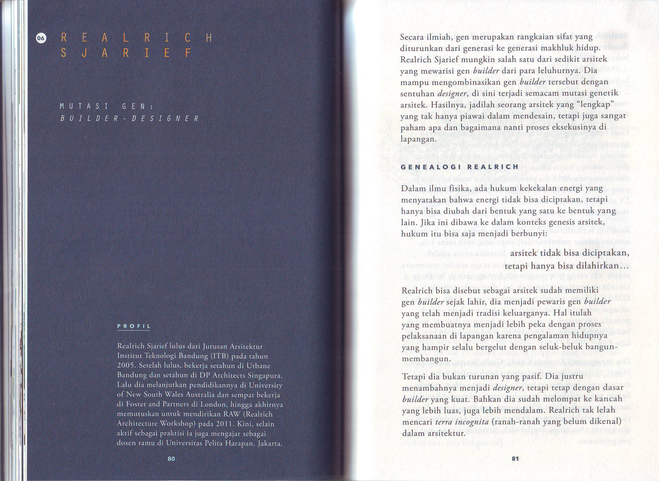 Yang terhormat dan terkasih, Pak Realrich dan Keluarga RAW Architecture. Saya dan kita sebagai manusia semuanya diciptakan dari nol, sesuatu yang paling dasar. Kita harus belajar, bergerak dan melakukan sesuatu berulang-ulang hingga suatu saat nanti kita ahli dalam hal yang sudah kita pelajari. Dunia arsitektur pun begitu. Kita harus belajar, bergerak, mencobanya berulang-ulang hingga suatu saat kita menjadi ahli. Semua hal harus kita lakukan sedemikian rupa,