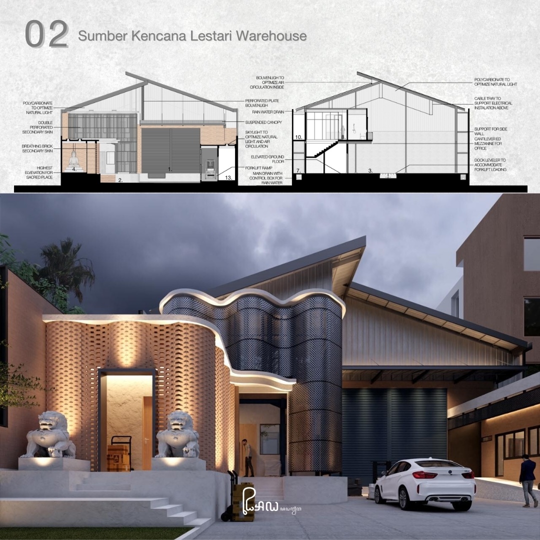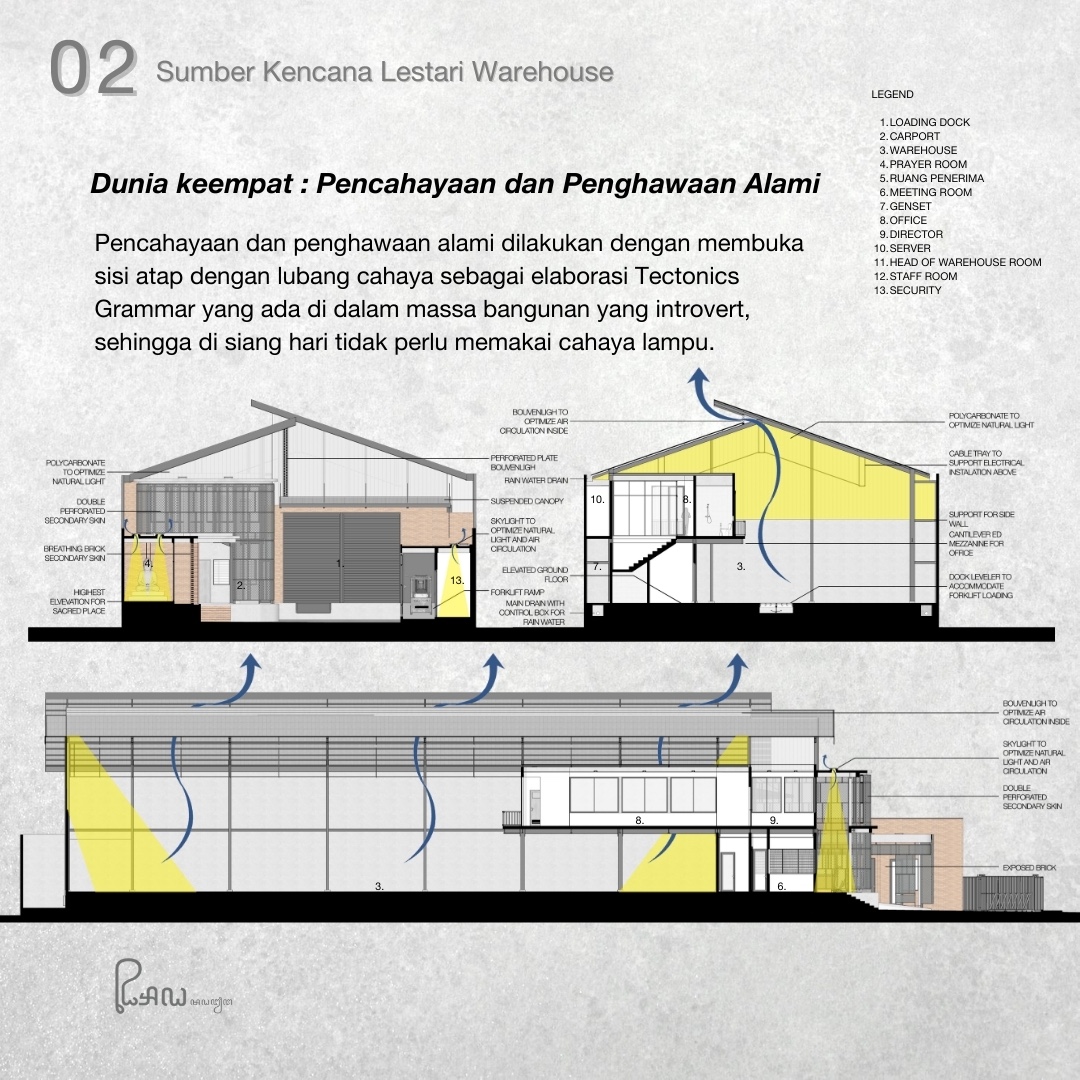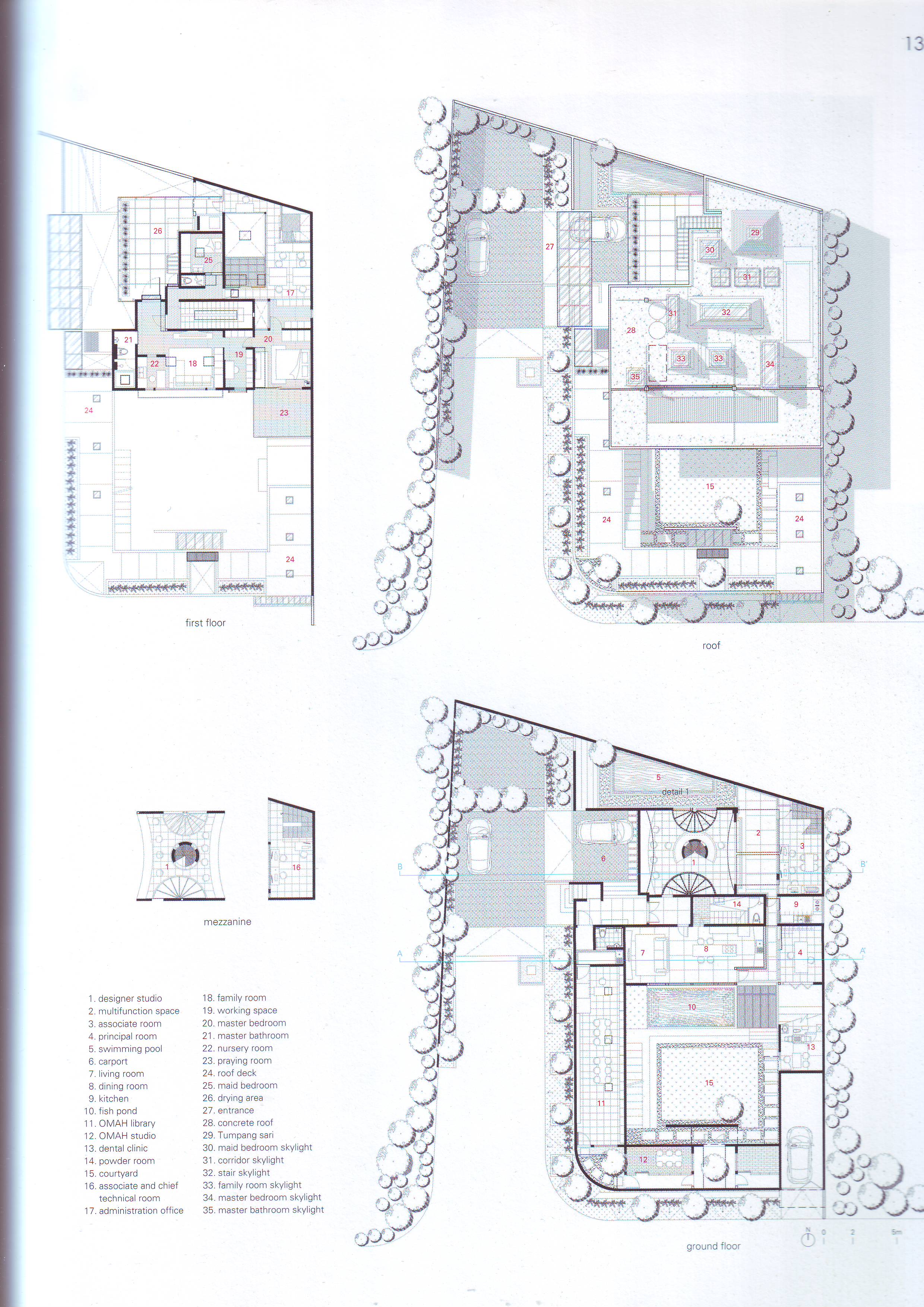 From the outside, the design exercised introvert expression, blocked by layers of solid wall, humble with existing with tropical canopy as expression. The curve, circular expression is blocked by the wall and strange library as periphery.The transparency and more complex form emerge when we enter the building passing the public through more private space.