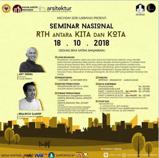 There will be a lecture by Anas Hidayat titled 1 percent yang dinanti, about the death of the architect after the work is born and sharing of the craftsmanship process with the team involved to attract discussion and further response. We need you to RSVP because space is limited, there will be food for people who are fasting at 6 pm after the lecture.