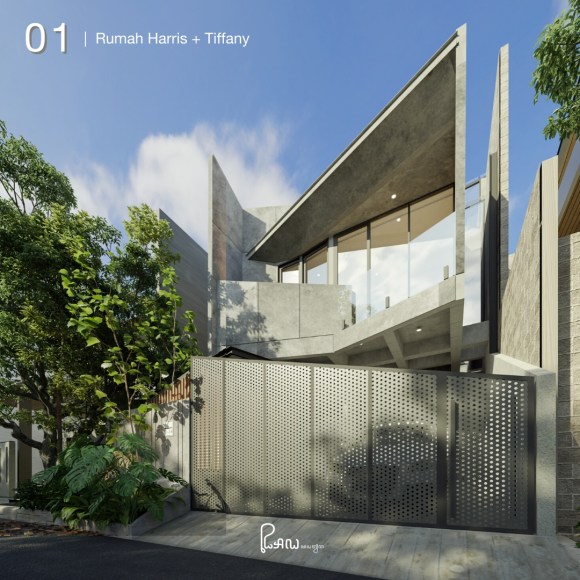 Situated in the increasingly crowded gated community at West Jakarta, Indonesia, the 110 sqm design architecture office “RAW architecture” occupies a 150 sqm in 375 sqm plot of land and built at the periphery and inside main house’s garage. Reflected by its name, RAW architecture office, the finishes is bare and using natural material. Size-wise it is extremely efficient, and relatively small, but its dotted exposed plywood facade combined with exposed concrete, black painted wall gives it a distinctive look yet privacy from outside the gated neighbourhood.
