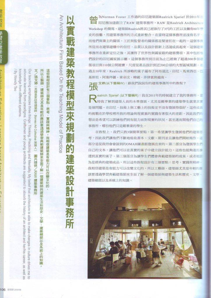 RAW has been arranging summer architecture fellowship program which invites 50 people per year in South East Asia to be trainee, learning skill of programming, designing space, and more is to understand the local craftsmanship available developed in the office. http://raw.co.id/summerarchitectureworkshop/