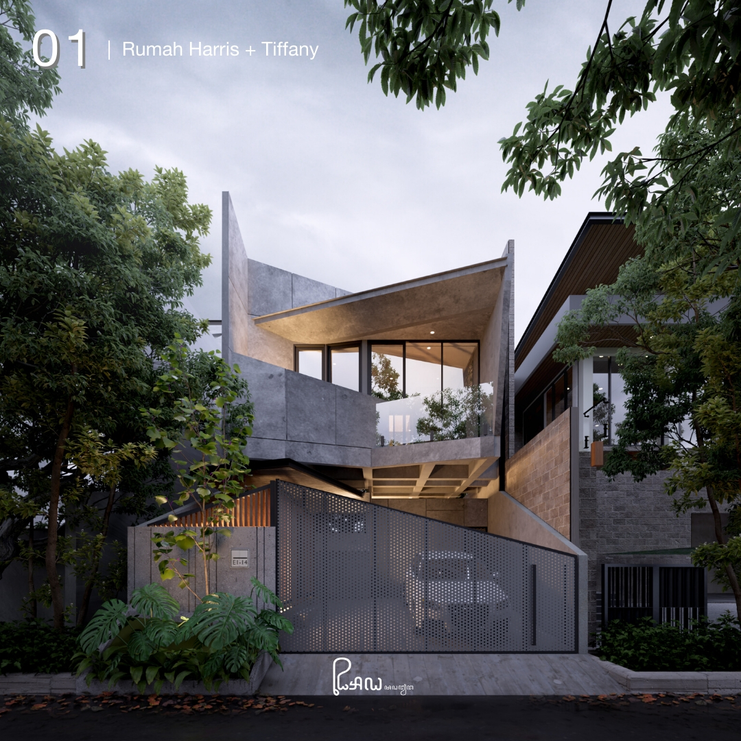 Situated in the increasingly crowded gated community at West Jakarta, Indonesia, the 110 sqm design architecture office “RAW architecture” occupies a 150 sqm in 375 sqm plot of land and built at the periphery and inside main house’s garage. Reflected by its name, RAW architecture office, the finishes is bare and using natural material. Size-wise it is extremely efficient, and relatively small, but its dotted exposed plywood facade combined with exposed concrete, black painted wall gives it a distinctive look yet privacy from outside the gated neighbourhood.