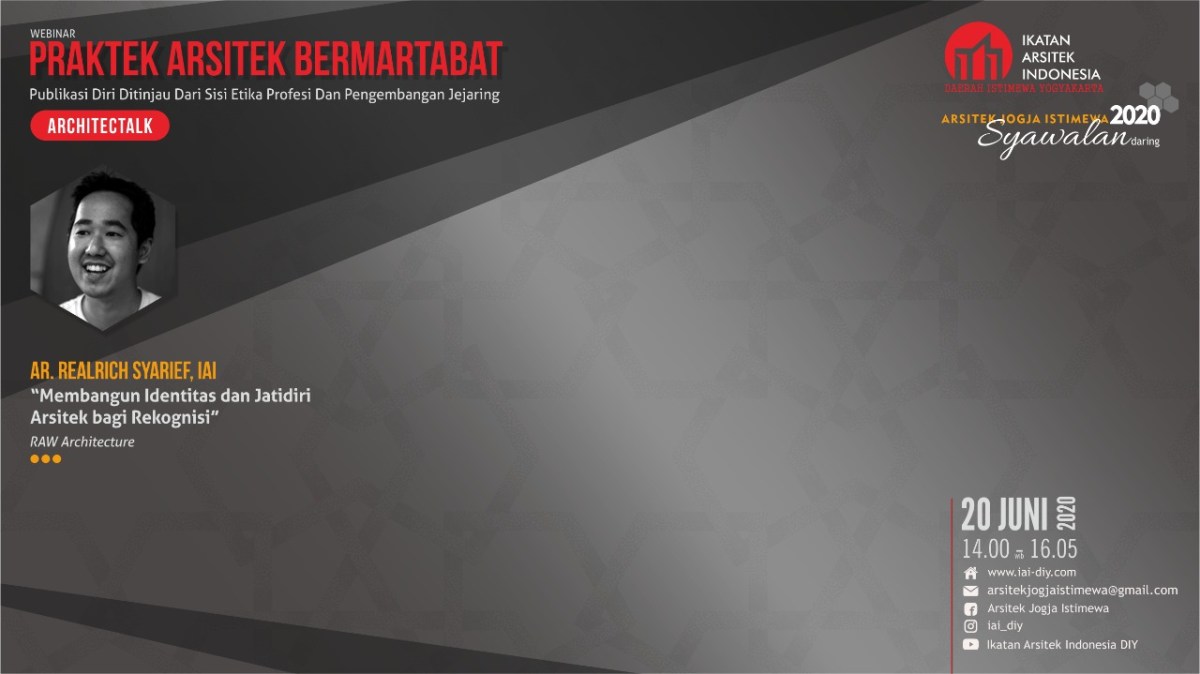 There will be a lecture by Anas Hidayat titled 1 percent yang dinanti, about the death of the architect after the work is born and sharing of the craftsmanship process with the team involved to attract discussion and further response. We need you to RSVP because space is limited, there will be food for people who are fasting at 6 pm after the lecture.