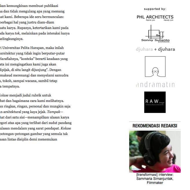 Ellie Stathaki mengirim email 3 bulan yang lalu, dan setelah itu kita berdiskusi melalui email berkali – kali untuk menseleksi apakah studio kami bisa masuk di Wallpaper kali ini. Apa yang saya lakukan di studio beserta tim semoga bisa membawa kasus – kasus yang memberikan dampak pembelajaran bagi banyak orang. Dari praktik yang menggunakan lokal, adaptasi kekriyaan, dan bagaimana metode desain kritis, desain – membangun, dan integratif antar disiplin memberikan kelenturan bagi sebuah proses desain yang bisa berganti rupa.