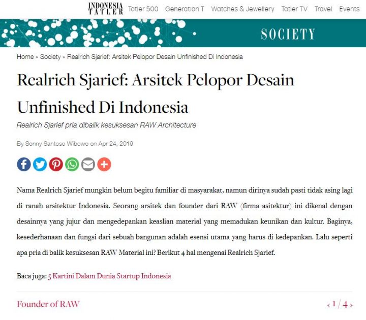 Elle wrote “The Wallpaper* Architects’ Directory 2021 includes RAW Architecture, the fast-emerging Indonesian practice set up by Realrich Sjarief”