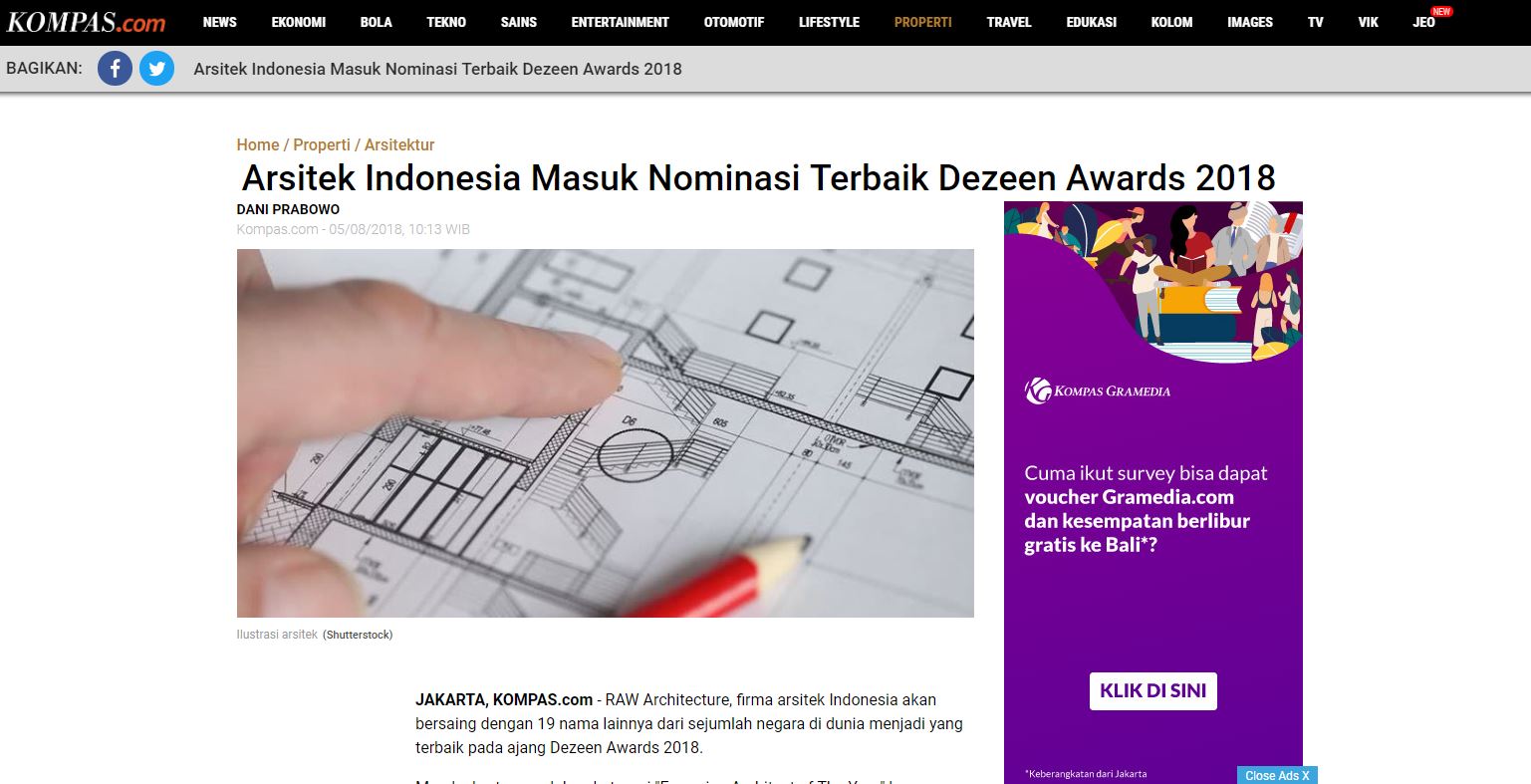 RAW featuring in Kompas.com article for Dezeen Awards 2018